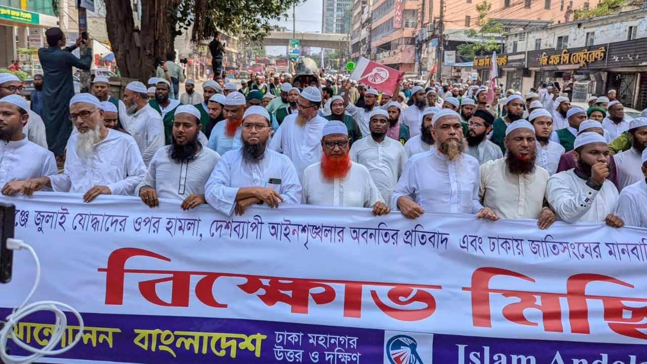 আজ শুক্রবার (১৮ জুলাই) বাদ জুমা জাতীয় মসজিদ বায়তুল মুকাররম উত্তর গেইটে গোপালগঞ্জে জুলাই যোদ্ধাদের উপর হামলা, সারাদেশে আইন-শৃঙ্খলার চরম অবনতি এবং ঢাকায় জাতিসংঘের মানবাধিকার অফিস স্থাপনের অনুমতি বাতিলের দাবিতে আয়োজিত বিক্ষোভ মিছিল পূর্ব সমাবেশে প্রধান অতিথির বক্তব্যে তিনি এসব কথা বলেন। দলের যুগ্ম মহাসচিব ও ঢাকা মহানগর উত্তর সভাপতি প্রিন্সিপাল মাওলানা শেখ ফজলে বারী মাসউদের সভাপতিত্বে অনুষ্ঠিত সমাবেশে বক্তব্য রাখেন, দলের যুগ্ম মহাসচিব ও ঢাকা মহানগর দক্ষিণ সভাপতি মাওলানা মুহাম্মদ ইমতিয়াজ আলম, সহকারী মহাসচিব মাওলানা আহমদ আবদুল কাইয়ুম, বীর মুক্তিযোদ্ধা আবুল কাশেম, মাওলানা মুহাম্মদ আরিফুল ইসলাম, আলহাজ্ব আব্দুল আউয়াল মজুমদার, মুফতী ফরিদুল ইসলাম, মুফতী মোঃ মাছউদুর রহমান, যুবনেতা মোহাম্মদ ইলিয়াস হোসাইন, ছাত্রনেতা মাহবুবুর রহমান নাহিয়ান।