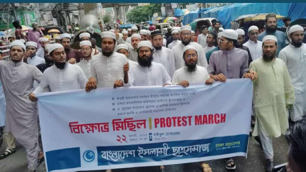 কওমি মাদরাসা সনদের স্বীকৃতি যথাযথ কার্যকর করাসহ বিভিন্ন দাবিতে বিক্ষোভ মিছিল ও সমাবেশ করেছে ঐতিহ্যবাহী ছাত্র সংগঠন বাংলাদেশ ইসলামী ছাত্রসমাজ