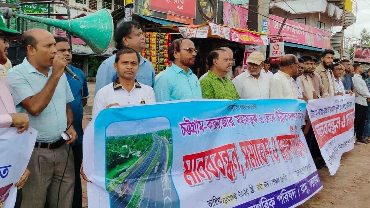 চট্টগ্রাম-কক্সবাজার মহাসড়ক ৬ লেনে উন্নীত করার দাবিতে মানববন্ধন