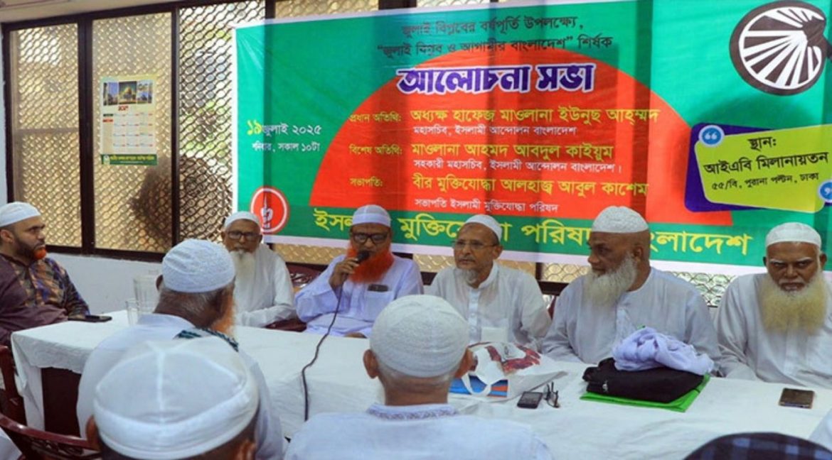 শনিবার (১৯ জুলাই) পুরানা পল্টনস্থ আইএবি মিলনায়তনে ইসলামী মুক্তিযোদ্ধা পরিষদ বাংলাদেশের উদ্যোগে জুলাই বিপ্লবের বর্ষপূর্তি উপলক্ষে ‘জুলাই বিপ্লব ও আগামীর বাংলাদেশ’ শীর্ষক আলোচনা সভায় প্রধান অতিথির বক্তব্যে তিনি এসব কথা বলেন।