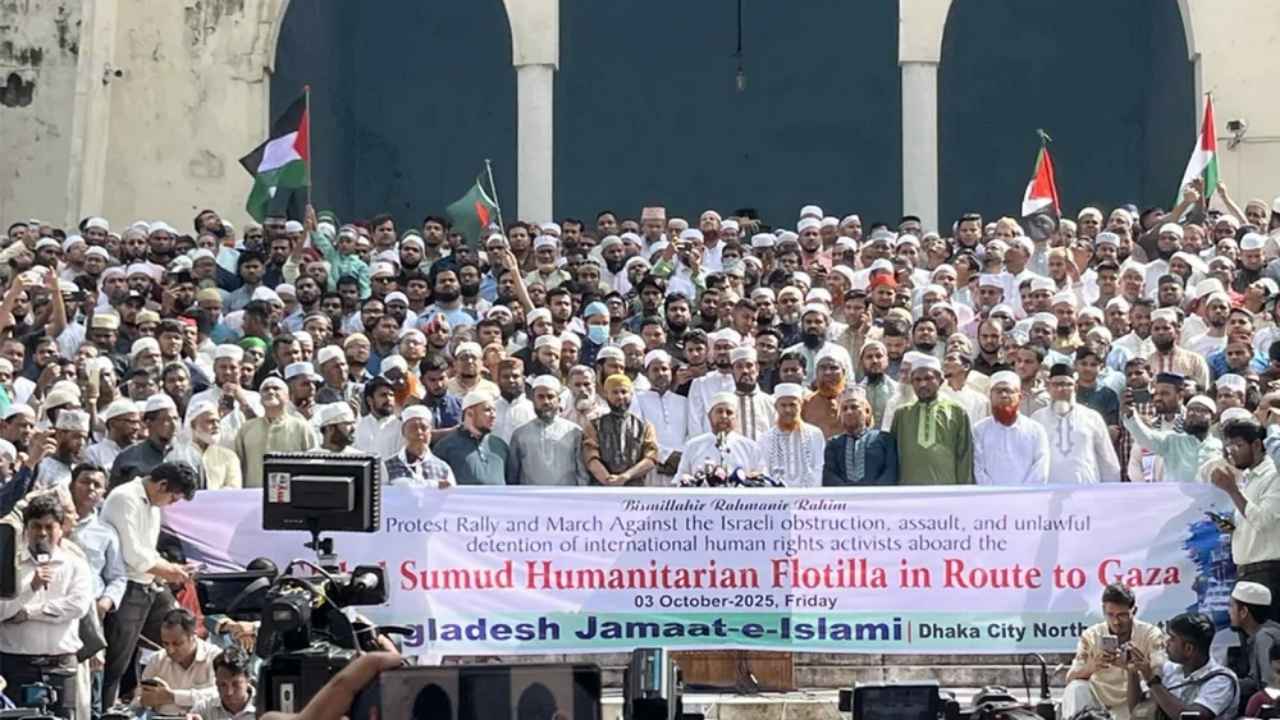 সারা বিশ্বের মুসলমানদের ঐক্যবদ্ধ হওয়ার আহ্বান জানিয়েছেন বাংলাদেশ জামায়াতে ইসলামী সময়ের সহকারী সাধারণ সম্পাদক মাওলানা রফিকুল ইসলাম খান। শুক্রবার (৩ অক্টোবর) জাতীয় মসজিদ বায়তুল মোকার্রমের উত্তর গেটে জামায়াতে ইসলামী ঢাকা মহানগর উত্তর-দক্ষিন আয়োজিত বিক্ষোভ সমাবেশে তিনি বলেন, “ফিলিস্তিন যতদিন মুক্ত এবং স্বাধীন হবে না, ততদিন আমরা তাদের পাশে থাকবো; আমাদের লড়াই ও সংগ্রাম অব্যাহত থাকবে।”