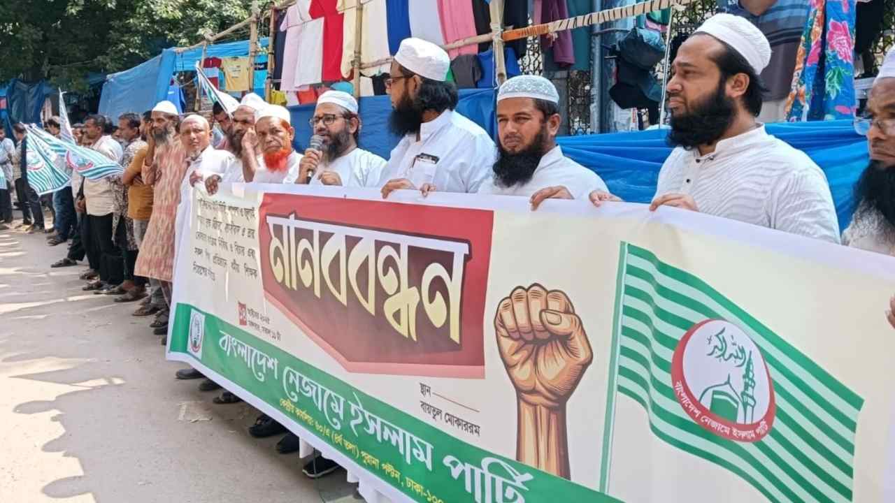 বাংলাদেশ নেজামে ইসলাম পার্টি ঢাকা মহানগর এর উদ্যোগে আজ মঙ্গলবার সকাল ১১টায় জাতীয় মসজিদ বায়তুল মোকাররম এর উত্তর গেটে ৫ দফা দাবী বাস্তবায়নের দাবীতে মানববন্ধন কর্মসূচি পালন করেছে।